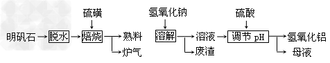 5、填空题 明矾石的主要成分是K2SO4·Al2(SO4)3·2Al2O3·6H2O,此外还含有少量Fe2O3杂质。利用明矾石制备氢氧化铝的流程如下:?