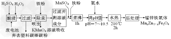2、填空题 铁氧体可用于隐形飞机上吸收雷达波涂料。一种以废旧锌锰电池为原料制备锰锌铁氧体的主要流程如下