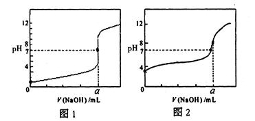 (4)用NaOH溶液分别滴定20.00mL0.1mol/L盐酸和20.00mL0.1mol/L醋酸溶液,得到如图所示两条滴定曲线,用NaOH溶液滴定醋酸溶液的曲线是?(填“图1”或“图2”)