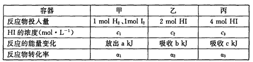 (6)在温度、容积相同的3个密闭容器中,按下表投入反应物,发生反应(H2(g)+I2(g)