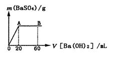 (5)向20 mL硫酸和盐酸的混合液中逐滴加入pH=13的Ba(OH)2溶液,生成BaSO4的量如右图所示,B点溶液的pH=7(假设体积可以直接相加),则c(HCl)=_______mol·L-1.
