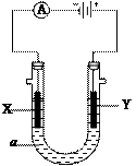 装有电解液a;X、Y是两块电极板,通过导线与直流电源相连。
