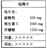4、选择题 下图是某“泡腾片”的标签。将这样一粒泡腾片放入水中,药片完全溶解,同时产生大量气泡,这个过程