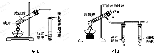 5、实验题 某校化学兴趣小组为探究铁与浓硫酸的反应,设计了图1、图2所示装置进行实验。