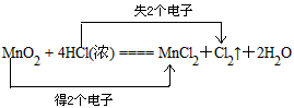 1、填空题 (1)用双线桥标出电子转移的方向和数目:MnO2+4HCl(浓) ==MnCl2+Cl2↑+2H2O