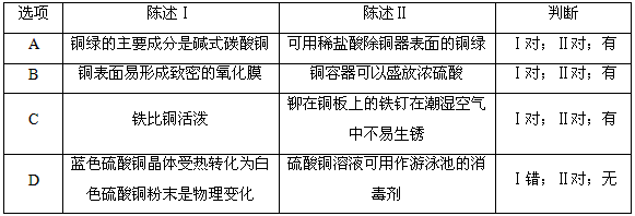 (5)下表中,对陈述Ⅰ、Ⅱ的正确性及其有无因果关系的判断都正确的是________(填字母)。