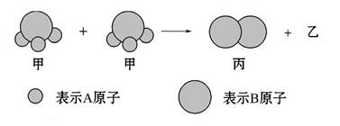 4、选择题 下图表示2个甲分子反应生成1个丙分子和3个乙分子,下列对此判断不正确的是 ( )