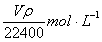 3、选择题 在标准状况下,VL氨气溶于水配成1L密度为ρg/cm3的氨水,该氨水的物质的量浓度为