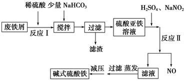 5、简答题 (14分)碱式硫酸铁[Fe(OH)SO4]是一种新型高效絮凝剂,常用于污水处理,在医疗上也可用于治疗消化性溃疡出血。工业上利用废铁屑(含少量氧化铝等)生产碱式硫酸铁的工艺流程如下所示: