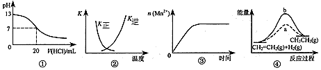 C.图③表示10 mL 0.01 mol·L-1 KMnO4酸性溶液与过量的0.1 mol·L-1 H2C2O4溶液混合时,n(Mn2+) 随时间的变化