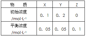 3、选择题 在25℃时,密闭容器中X、Y、Z三种气体的初始浓度和平衡浓度如下表