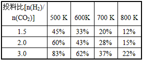 已知一定压强下,该反应在不同温度、不同投料比时,CO2的转化率见下表: