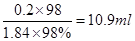 5、简答题 实验室用98%的浓H2SO4(ρ=1.84g?cm-3)配制1.5mol?L-1稀H2SO4溶液100mL.