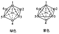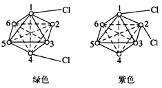 ②后两种物质组成相同而颜色不同的原因是它们互为同分异构体,已知绿色的配合物界内结构对称,请在下图中用元素符号标出氯原子的位置。