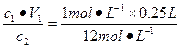 设配制250 mL(V1)1 mol·L-1?(c1)HCl溶液,需要12 mol·L-1(c2)HCl溶液的体积为V2。
