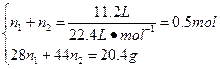本题解析:解法一:因为,设原混合气体中有n1 mol CO和n2 mol CO2。