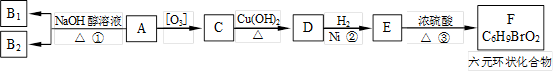 本题解析:由题中所给信息F得分子式可知A中有一个Br和6个C,分析A的相对分子质量为161,A为C6H9Br,不饱和度为2,A必定是环状化合物,含有一个双键,氧化后结构中有一个羰基可再氧化,推得 : B1、B2分别为: