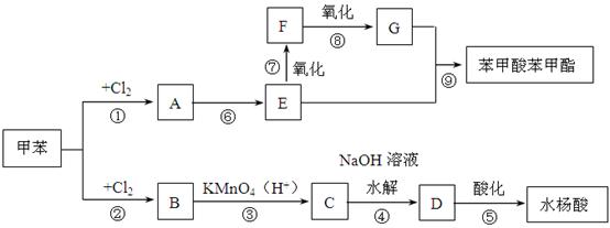 4、填空题  从甲苯出发,按下面流程可以合成苯甲酸苯甲酯和水杨酸: