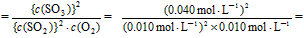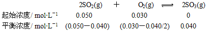 2SO3(g)在一定条件下达到平衡,测得c(SO3)=0.040 mol/L。计算该条件下反应的平衡常数K和SO2的平衡转化率(写出计算过程)。