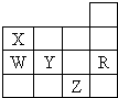 2、选择题  如图为元素周期表前四周期的一部分,下列有关R、W、X、Y、Z五种元素的叙述中,正确的是(  )