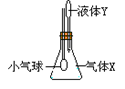 1、选择题 在图示装置中,将液体Y滴入瓶中并摇动,一会儿小气球胀大。则气体X与液体Y