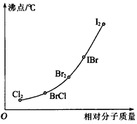 (2)上图是部分卤素单质和XX"型卤素互化物的沸点与其相对分子质量的关系图。它们的沸点随着相对分子质量的增大而升高,其原因是____________________。