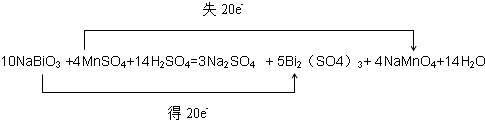 (3)①10NaBiO3+4MnSO4+14H2SO4=3Na2SO4+5Bi2(SO4)3+4NaMnO4+14H2O;