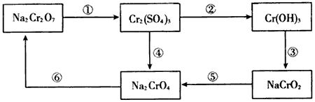 4、填空题 铬是水体的主要污染物之一,可以导致水生生物死亡。化学实验中,如使某步中的有害产物作为另一步的反应物,形成一个循环,就可不再向环境排放该有害物质。例如处理铬的实验循环示意图如下