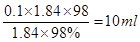 1、实验题 (5分)用质量分数为98%、密度为1.84g/cm3的浓硫酸配制100mL1.84mol/L的稀硫酸,若实验仪器有: