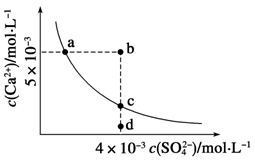 本题解析:A、处于曲线上的点为饱和溶液的平衡状态,故A正确;B、a、c两点温度相同,Ksp是一常数,温度不变Ksp不变,在曲线上的任意一点Ksp都相等,故B不正确;C、根据图示数据,可以看出b点Qc=2×l0-5>Ksp,所以会生成沉淀,平衡向生成沉淀的方向进行,此时溶液中c(SO4-)会小于4×l0-3mol/L,由于c(Ca2+)>c(SO42-),则c(SO4-)小于3×l0-3mol/L,故C不正确;D、d点为不饱和状态,钙离子浓度较小,如加入适量CaCl2固体,钙离子浓度增大,此时硫酸根离子浓度不变,则可以变到c点,故D正确,故选BC。