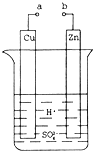 ②a和b用导线连接,该装置构成原电池,铜作正极,正极上氢离子得电子发生还原反应,电极反应式为2H++2e-=H2↑;锌失电子发生氧化反应而作负极,放电时,电解质溶液中氢离子向正极铜电极移动,