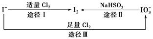 2、选择题  碘在地壳中主要以NaIO3的形式存在,在海水中主要以I-的形式存在,几种粒子之间的转化关系如图所示。下列说法中不正确的是(  )。