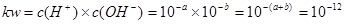 5、填空题 (8分)在t℃时,某NaOH稀溶液中,c(H+)=10-amol/L,c(OH-)=10-bmol/L,已知a+b=12,则: