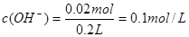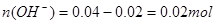 ;混合后,溶液中氢氧根离子过量,剩余物质的量为: