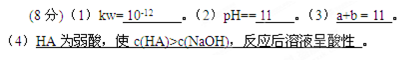 (4)该温度下,pH=2的某酸HA溶液和pH=10的NaOH溶液等体积混合后,混合溶液的pH=5。试分析其原因?。