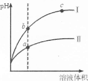 2、选择题 某温度下,相同pH的盐酸和醋酸溶液分别加水稀释,pH随溶液体积变化的曲线如下图所示。据图判断正确的是