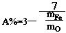 (3)设 Fe2O3被CO还原的百分率为A%,则A%和混和物中mFe︰mO的关系式为(用含mFe、mO的代数式表示)。 A%=?