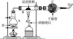 4、实验题 下图是铁粉和水蒸气反应的实验装置示意图。