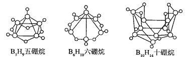 2、选择题 2008 年北京奥运会主体育场的外形好似“鸟巢” ( The Bird Nest )。有一类硼烷也好似鸟巢,故称为巢式硼烷。巢式硼烷除 B10H14不与水反应外,其余均易与水反应生成氢气和硼酸,硼烷易被氧化。下图是三种巢式硼烷,有关说法正确的是