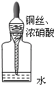 5、选择题 用内置有螺旋状铜丝的胶头滴管小心吸取一滴管浓硝酸后迅速插入细口瓶中(如图),滴管与瓶口接触处垫一小块滤纸使滴管与瓶口留少量空隙,依次观察到如下现象:①滴管内产生红棕色气体,液面下降;②滴管内液面上升,气体变成无色;③滴管内液面再次下降.下列说法中不正确的是