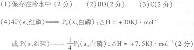 4、填空题 (8分)磷有三种同素异形体,分别为白磷(P4)、红磷和黑磷。