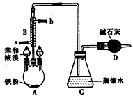 3、实验题 某化学课外小组用下图装置制取溴苯。先向分液漏斗中加入苯和液溴,再将混合液慢慢滴入反应器A(A下端活塞关闭)中。