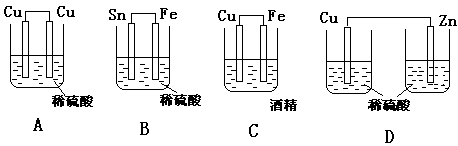 2、选择题 有A、B、C、D四块金属片,进行如下实验: