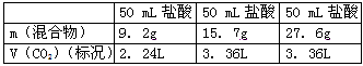 4、选择题 某学生用NaHCO3和KHCO3组成的某混合物进行实验,测得如下数据(盐酸的物质的量浓度相等),下列分析推理不正确的是