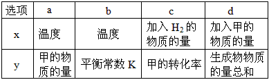②一定条件下,甲在固定体积的密闭容器中发生分解反应(△H>0)并达平衡后,仅改变下表中反应条件x,该平衡体系中随x递增y递减的是_______(选填序号)。