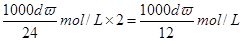 2、填空题 某氯化镁溶液的密度为d g/cm3,其中镁离子的质量分数为w,a mL该溶液中Cl—的物质的量为??。