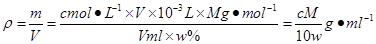 C、不正确,质量分数等于溶质质量与溶液质量的比,则W%= cVM/1000ρV×100%=cM/10ρ%