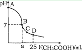4、选择题 在25 mL 0.1 mol·L-1 NaOH溶液中逐滴加入0.2 mol·L-1CH3COOH溶液,溶液pH变化曲线如图所示,下列有关离子浓度的比较正确的是?