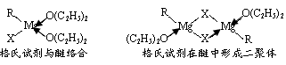 4、填空题 (10分)(1)金属镁有许多重要的用途,法国化学家维多克·格利雅因发明了在有机合成方面用途广泛的格利雅试剂而荣获诺贝尔化学奖,格利雅试剂的结构简式可表示为RMgX,它是金属镁和卤代烃反应的产物,简称格氏试剂,它在醚的稀溶液中以单体形式存在,并与二分子醚络合,在浓溶液中以二聚体存在,结构如下图: