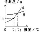本题解析:(1)由图像可知,在t2 ℃时,A、B两种物质的溶解度相同;